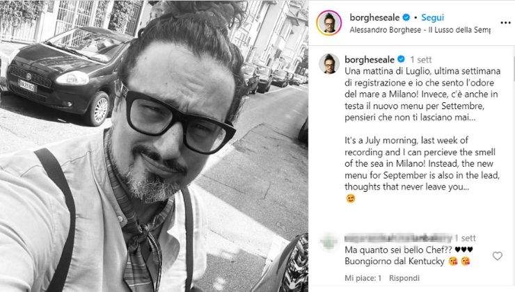 In particolare proprio in questi giorni, Borghese ha postato una foto accompagnata da una didascalia che svela il suo stato d’animo. “Una mattina di Luglio, ultima settimana di registrazione e io che sento l’odore del mare a Milano! Invece, c’è anche in testa il nuovo menu per Settembre, pensieri che non ti lasciano mai…”.